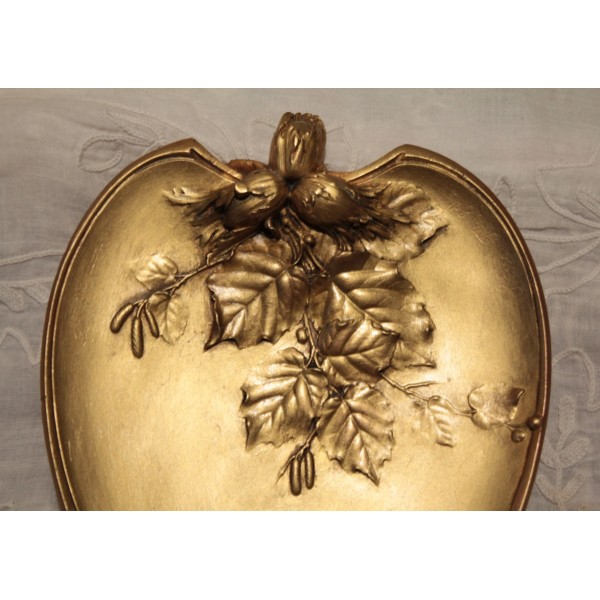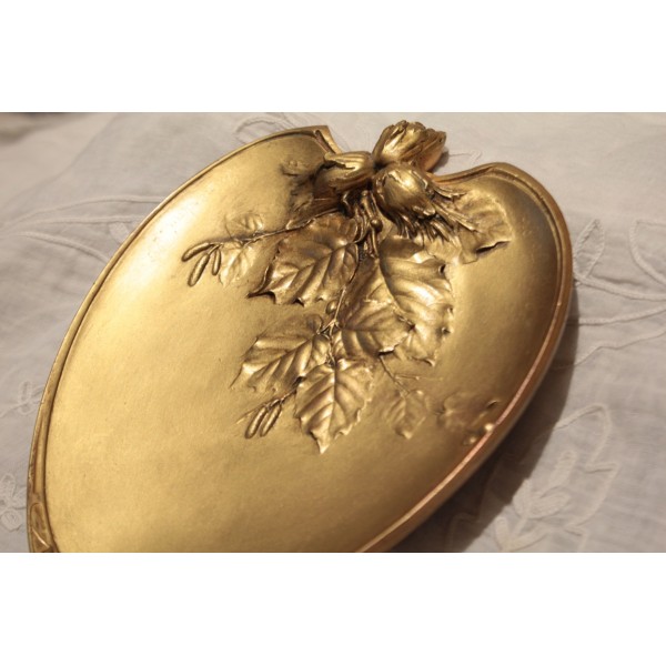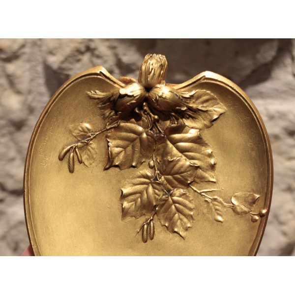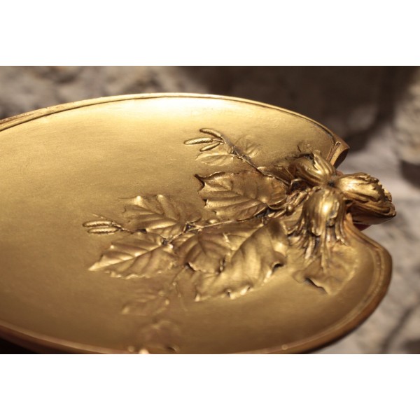 Vide-poche en bronze doré au fin décor de feuilles et branches de noisetier. Signé "Guénardeau Sclp" pour Som-Charles Guénardeau (1866-?) et "Susse Frs edt", pour la célèbre fonderie Susse et Frères (voir description ci-dessous).