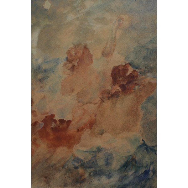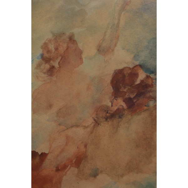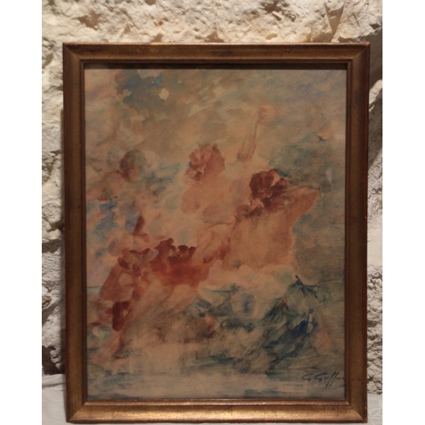 Aquarelle représentant trois femmes en train de se baigner. Signée en bas à droite "G. Griffon" pour l'artiste Gabriel Griffon (1866-1938), voir description ci-dessous.